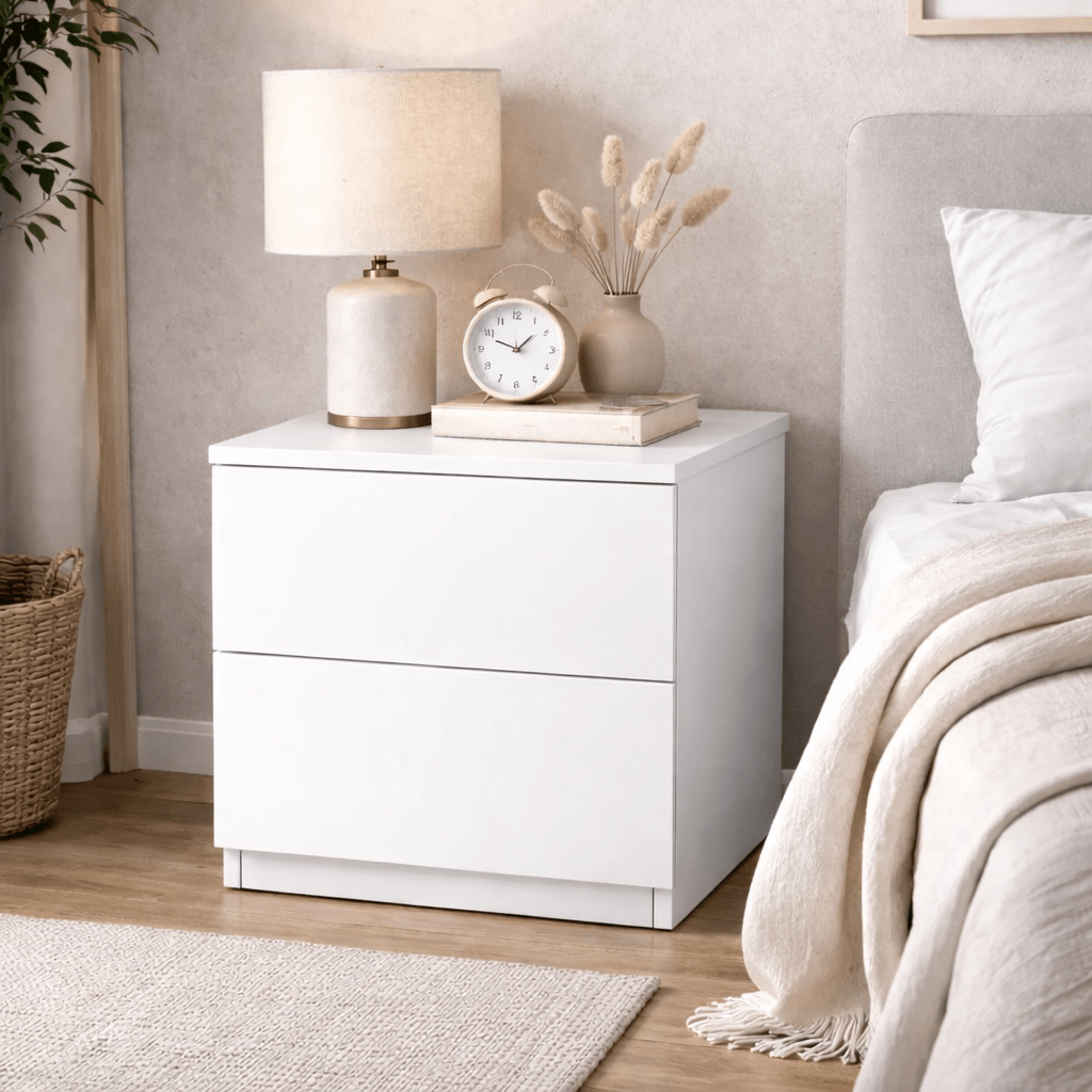 Dotée de deux tiroirs spacieux, la table de chevet Essenza offre un rangement pratique pour vos objets du quotidien : livres, accessoires, chargeurs ou effets personnels. Sa structure robuste garantit une excellente stabilité et une longue durée de vie.